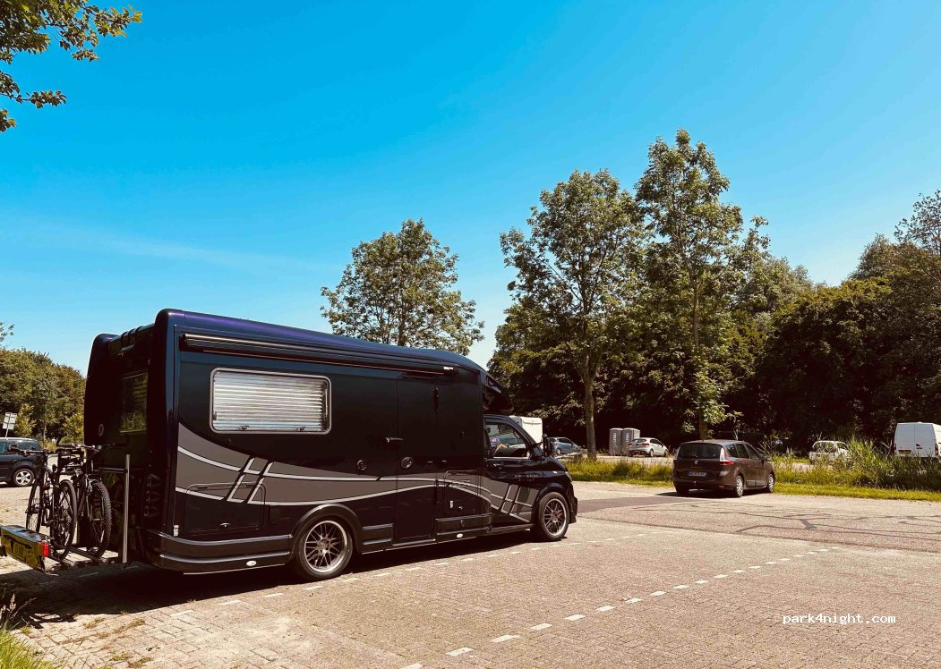 Grote parkeerplaats met handige en mooie ligging waar deze tijd van het jaar zeer veel ruimte was. Er zijn geen verbodsborden ivm overnachten, maar blijkbaar is in Nederland de algemene regel dat dit niet mag op publieke parkings. Nadeel: tot zeer laat in de avond (op weekdagen) rijden bijna continu auto's heen en weer op de parking. Geen idee waarom, het is doodlopend.