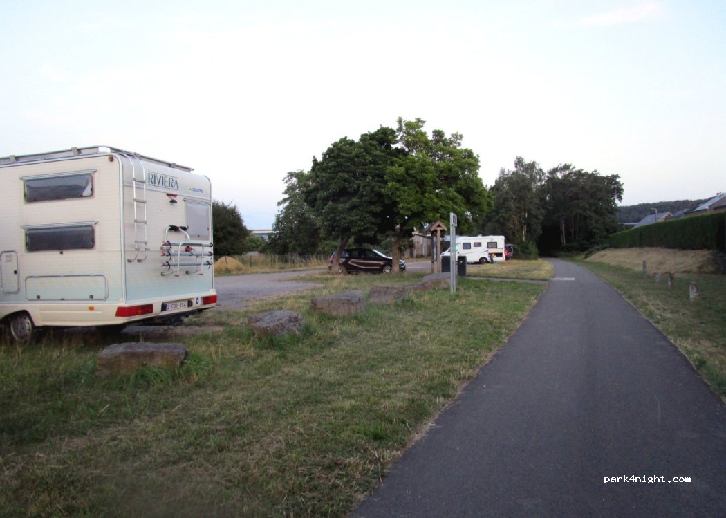 Triathlon international mi juillet = parking full et occupé en partie par les organisateurs. Glacier 5* à 2km sur la voie verte vers Fosses, ferme les lundis. Beaux circuits vélo dans les alentours. Passé 3 nuits OK.