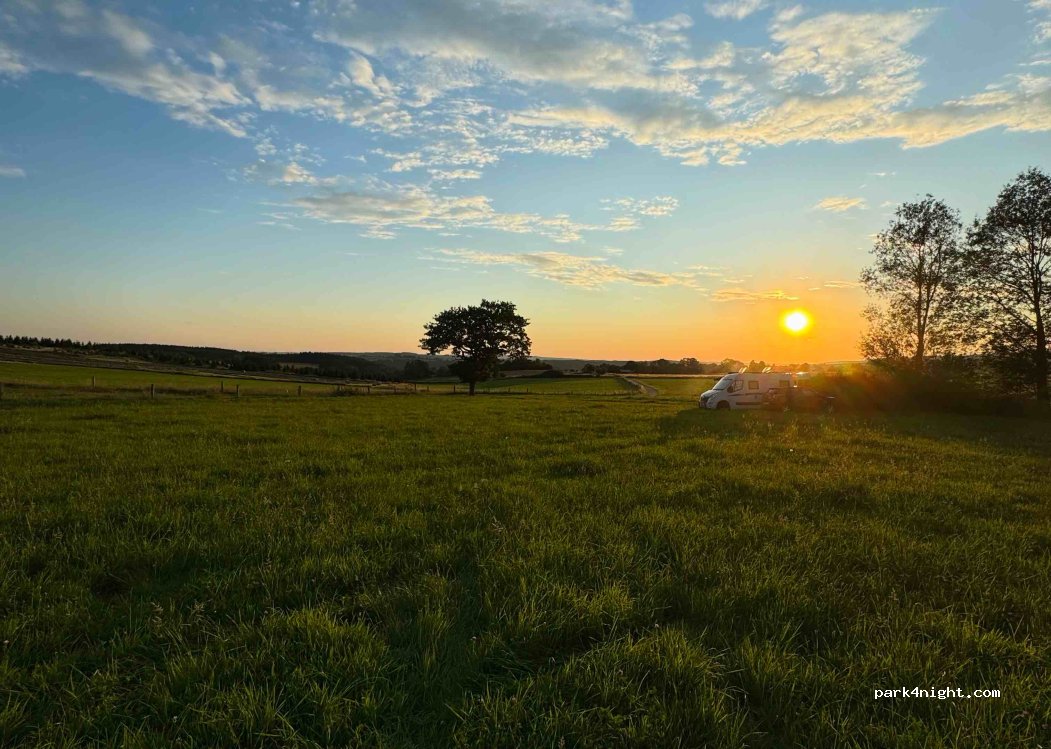 Mooie camperplek dichtbij Lac de Nisramont waar je kunt kajakken, mountainbiken, wandelen, suppen of zwemmen en meer. Erg rustig en mooi uitzicht. Vriendelijke eigenaar. €10/24u, geen services. Toegangsweg is verboden voor verkeer, maar toegestaan ivm priveweg naar camperplaats.