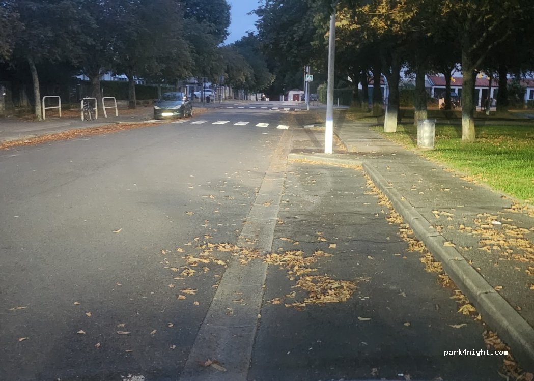 Stationnement le long du trottoir dans une rue plutôt calme, avec école maternelle et un parc avec tables de pique-nippe. WC avec eau (non potable), ombre, poubelles. Une fontaine d’eau potable dans le parc. Très pratique pour aller en centre ville avec le bus nº 5 qui, dans l’autre sens va à Biarritz. Riverains sympathiques.