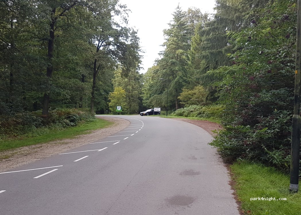 Direct aan het bos. We stonden bij de mountainbike-club. Ondergrond daar is asfalt, dus ook bij nattigheid prima, en het is recht. Laat op de (vrijdag)avond kwam er nog een auto met loeiende motor en slippende banden en zelfs vuurwerk... Die waren niet blij dat we er stonden. Zaterdag veel sporters en wandelaars. Er zijn veel parkeerplaatsen op het park, misschien is een andere hoek beter.