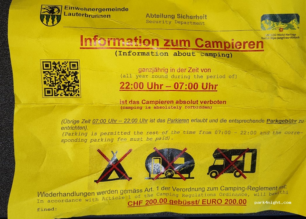 The area designed for motorhomes was blocked for whatever reason since 15.10 and the responsible on the area was extremely rude to us. We had to go back to the enter of the city close to the train station to park in the area designed for buses (the other guy there was a lot more comprehensive) but costs 10 CFH for 4h stay