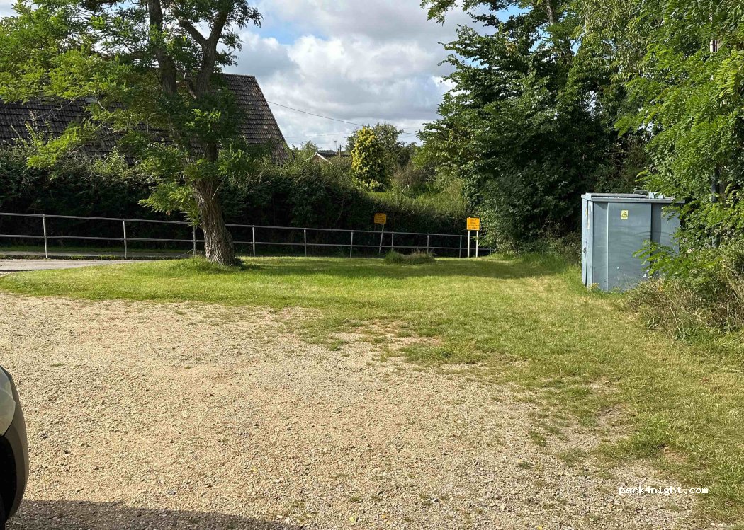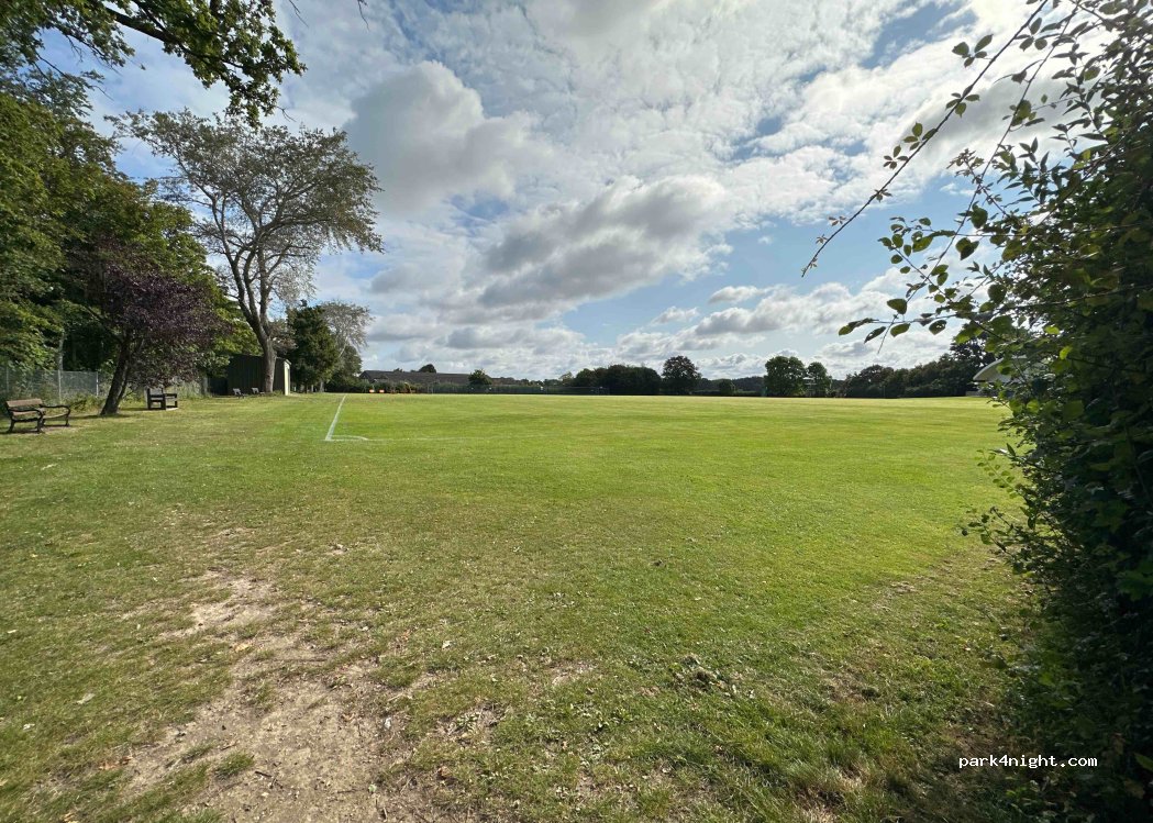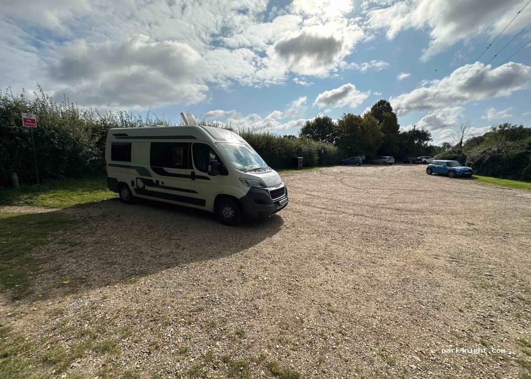 Big public car park next to a recreational area, lots of play equipment for kids and a nice flat car park.