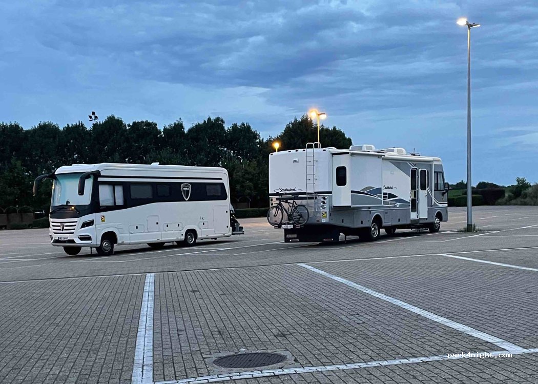 Een publieke parking aan sporthallen, met wel wat op en af verkeer, snachts rustig, tijdens opening sporthal kan je daar het toilet gebruiken, goed om Tienen en omstreken te verkennen.