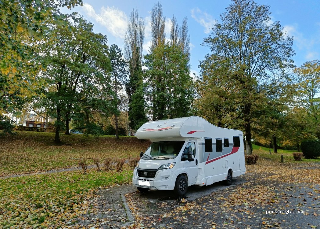 Kleiner Parkplatz entlang eines öffentlichen Gartens in einer sehr ruhigen Wohngegend. In der Nähe des Stadtzentrums, 5 Minuten mit dem Fahrrad, Parkmöglichkeit für lange Fahrzeuge. Ruhige Nacht und ruhiger Morgen. Der große Vorteil dieses Ortes ist die sehr charmante kleine Bar, die nur einen Steinwurf entfernt liegt. CHALET SUISSE ist ein echtes Juwel, mit Bier und netten Menschen!