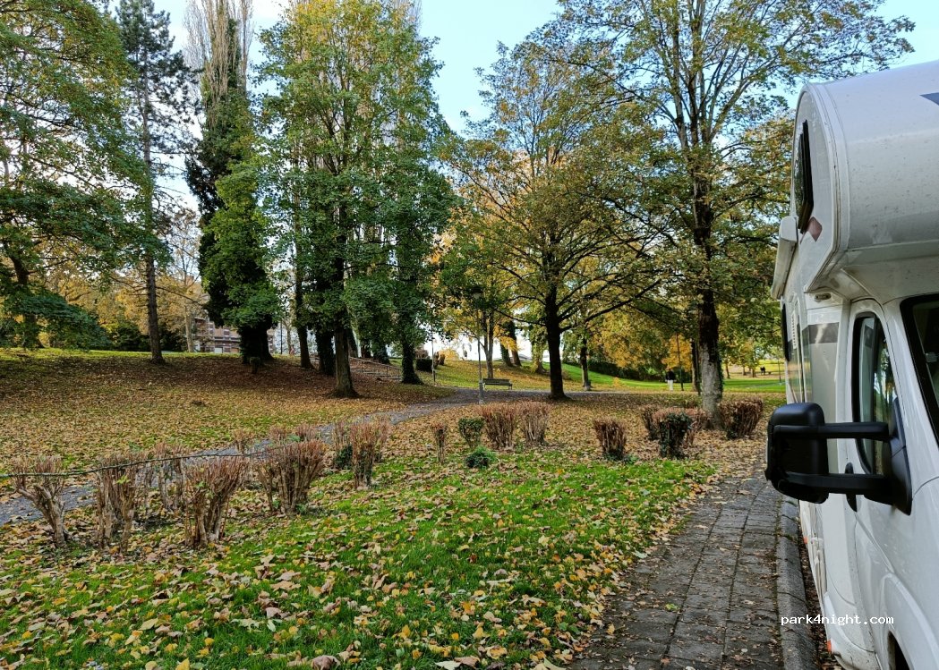 Sehr angenehmer Parkplatz, man kommt schnell in die Stadt und hat wenigstens grün vor der Tür. Leider täuscht der Park: er liegt direkt an einer vielbefahrenen Straße. Wir haben von Samstag auf Sonntag übernachtet, da hat es nachts und morgens nicht gestört. Es passen aber max 3 Wohnmobile auf den Parkstreifen.