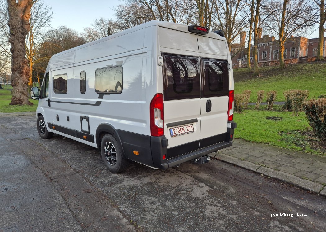 Kleine parkeerplaats langs een openbare tuin in een zeer rustige woonwijk. Dicht bij het stadscentrum, 5 minuten fietsen, mogelijkheid tot parkeren met lange voertuigen. Rustige nacht en rustige ochtend. De grote bonus van deze plek is het zeer charmante barretje dat op een steenworp afstand ligt. CHALET SUISSE is een echt pareltje, met bier en lieve mensen!