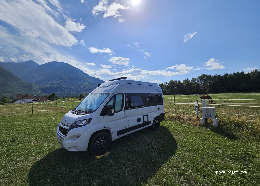 Super idyllischer Platz an der Pferdekoppel und Blick auf die Berge . Rustikale Sanitäranlagen, Pool und Whirlpool. Super netter Gastgeber, der mit Tipps zur Umgebung zur Verfügung steht. Wir kommen wieder!!!