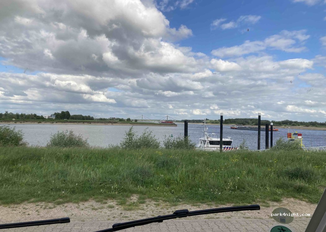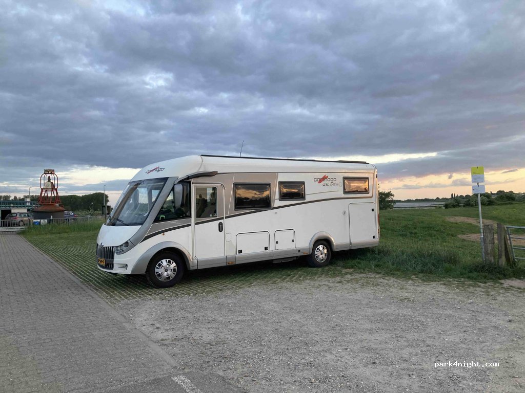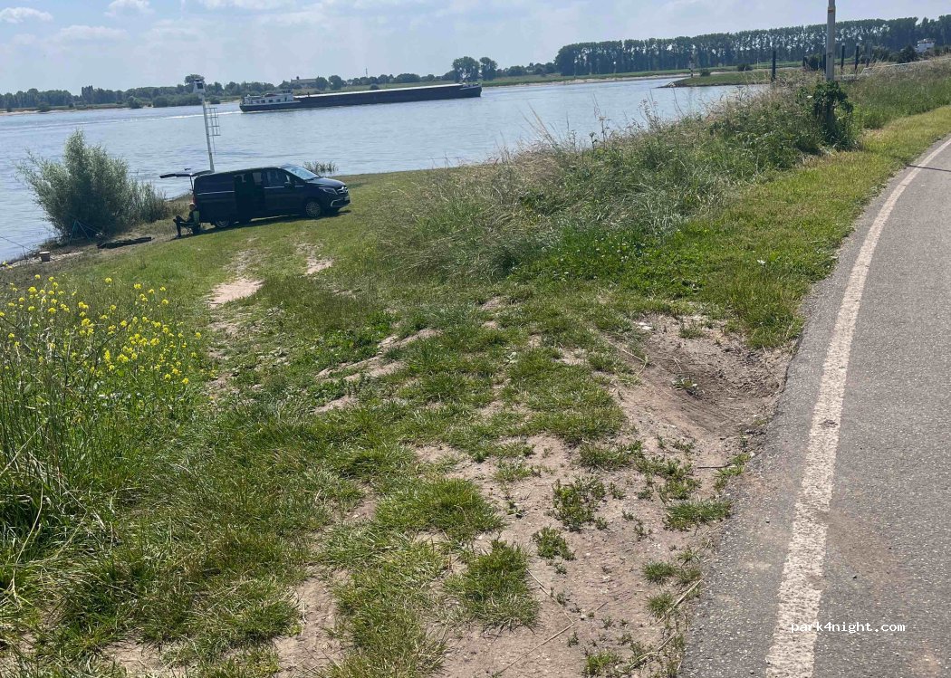 + Leuke plek om te staan; heerlijk stil als er geen schepen passeren; zicht op de Waal en doorgang naar een sluis; dichtbij een jachthaven en het centrum van Tiel. - steile helling; bij een gebouw in Rijkswaterstaat