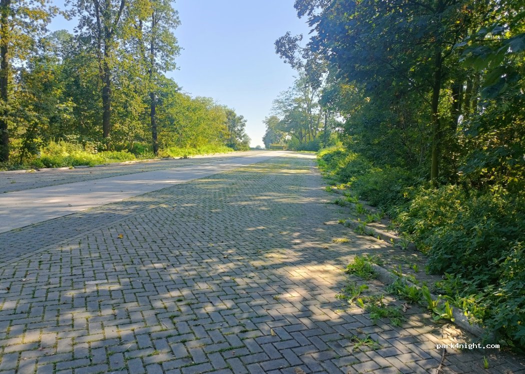 Parkeerplaatsen dichtbij een weg. Ik heb er niet overnacht, maar heb geen enkel bord gevonden voor 's nachts parkeren.