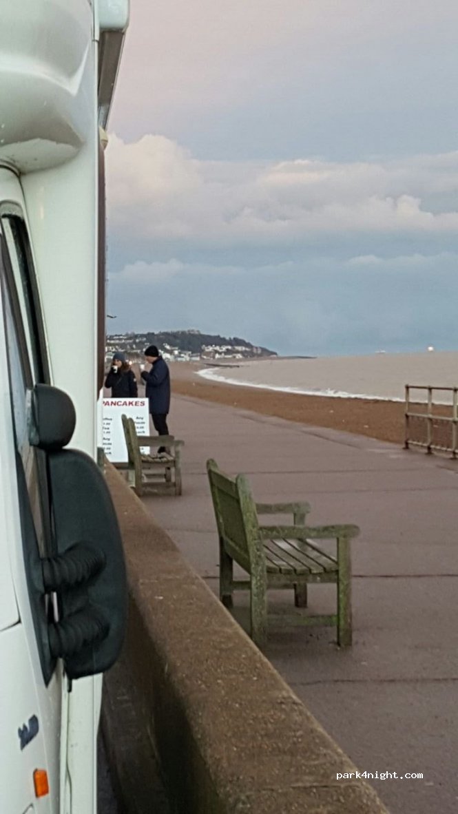 Only negative parts are the cars whizzing past & parking on the road means one side you’ll struggle to get out by the wall & the other is fast busy traffic. Pay & display. Absolutely beautiful views and the beach is lovely, lots of dog walkers. Definitely nice to park up for a few hours.