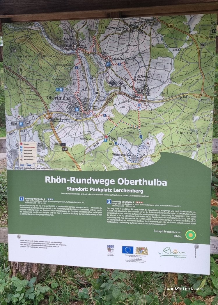 Wanderparkplatz, tagsüber Radfahrer und Wanderer, nachts absolut ruhig. ca 5 Minuten von der A7.