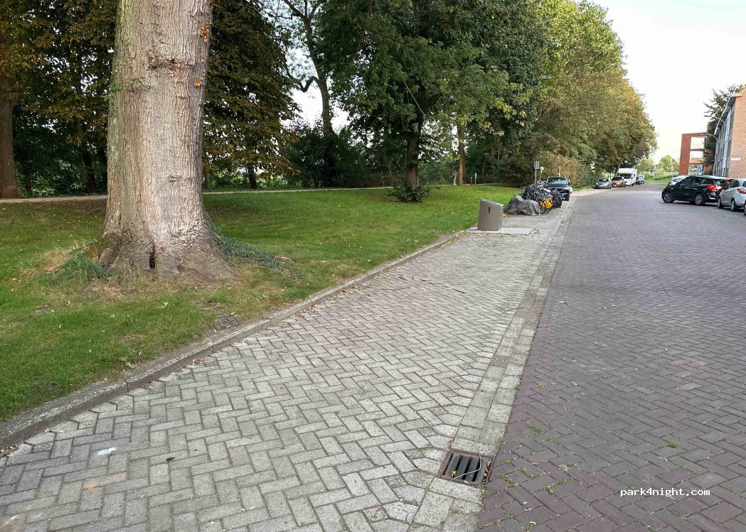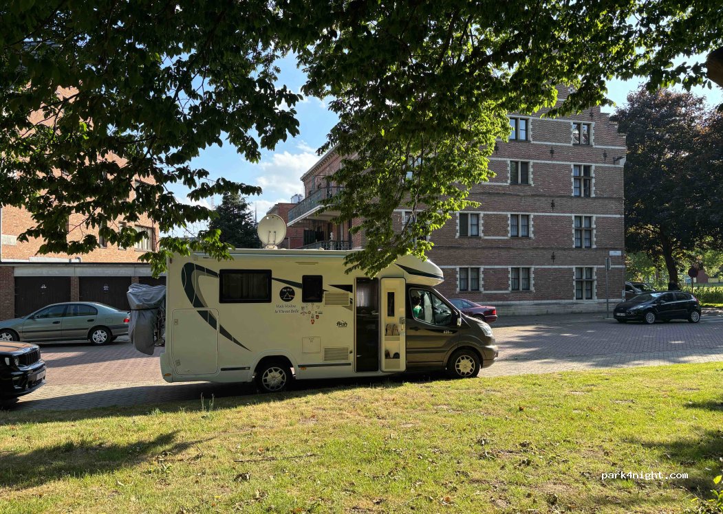 place de parking dans une rue pavillonnaire, le long du chemin qui borde la rivière Nethe. pas de service mais de quoi faire une balade digestive. terrain de loisir pour les enfants. payant à partir de 9h30 si vous prenez votre ticket avec partie gratuite. assez calme dans l'ensemble. une alternative plus qu'intéressante à l'aire de camping car car environnement plus calme et plus joli.