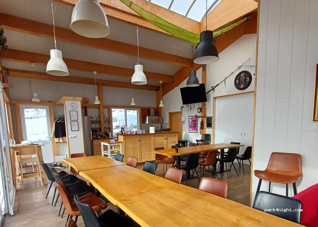 Camping, très chaleureux où on s’y sent chez soi. Nous sommes arrivés après un très long périple et une tempête de neige. Le camping était vide. Il n’y avait que nous tous les services sont mis à disposition. Ils sont compris dans le tarif. Une piscine chauffée également. L’endroit était juste parfait, le meilleur de l’Islande, encore merci pour l’hospitalité