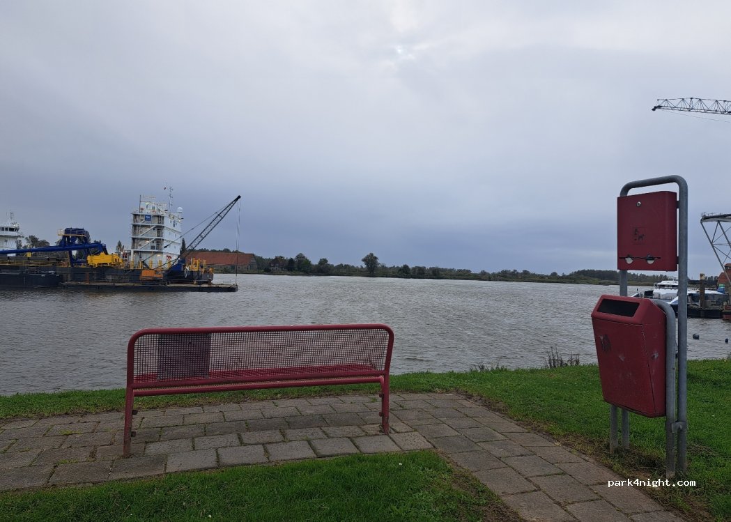 Bel endroit dans une zone industrielle au bord de l'eau. Banc avec vue.