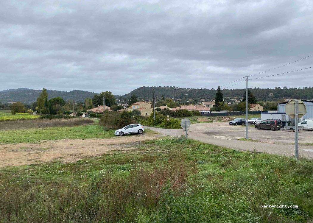 Très bien pr dormir une nuit derrière, l’endroit reste assez calme malgré la route qui passe devant. Nous y étions en voiture. Les camping-cars, vans etc. sont les bienvenus, il y a de la place. En revanche au réveil le matin, ça devient bruyant, avec le va-et-vient des camions etc. qui se rendent à la boulangerie toute proche. Il n’y a pas de poubelle, ni de point d’eau pour se laver les mains.