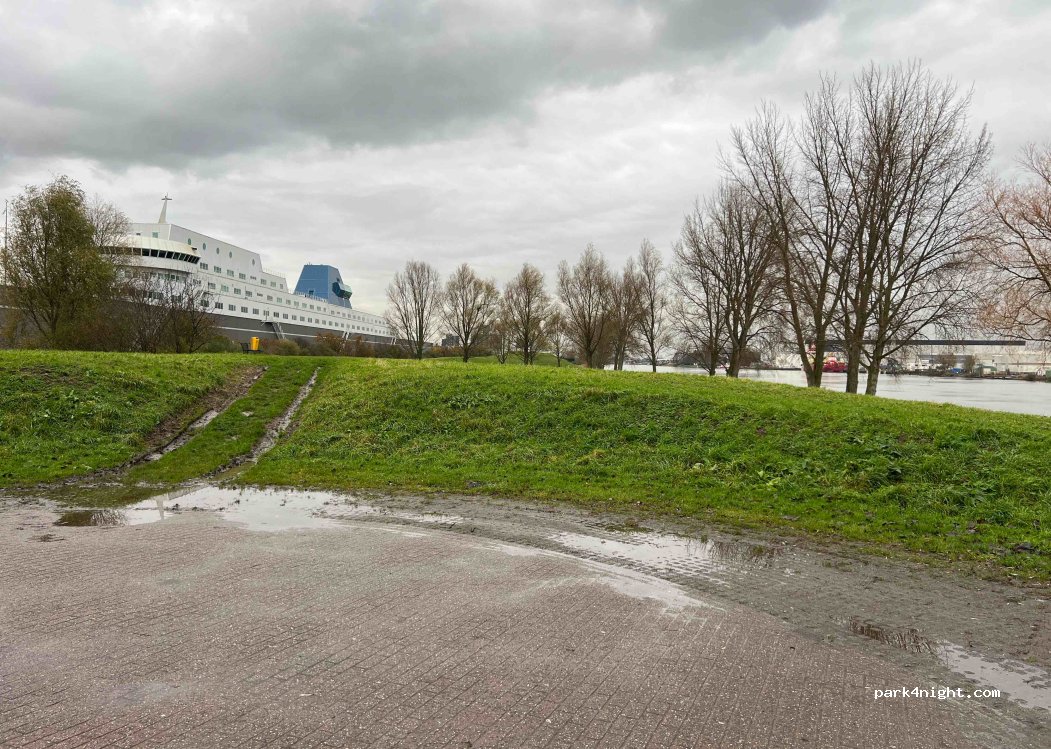 Not allowed parking during the night. We left the camper there to visit Rotterdam by using bicycles and waterbus (4,8€pp each way) and was perfect but when we came back to spend evening and night we going a ticket from municipality saying that in all the city was not allowed to spent night in parking lot. Suggested ONLY for DAY