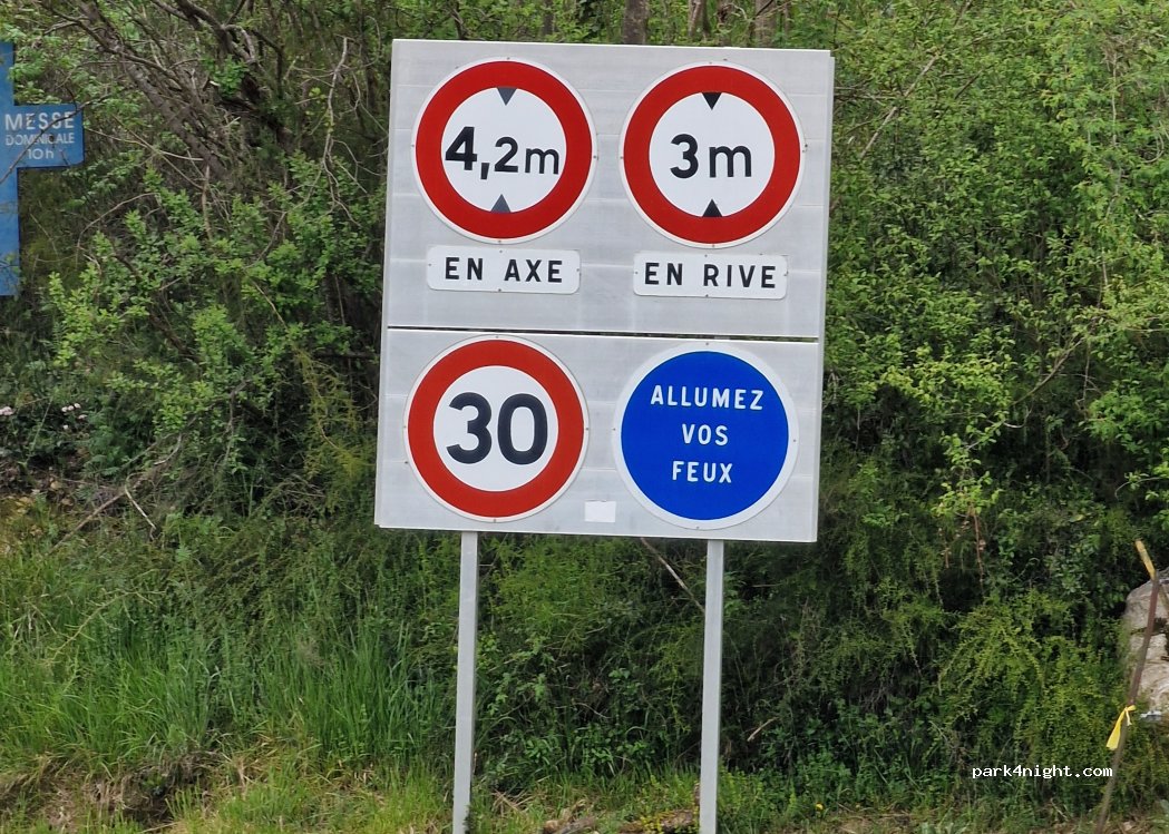Parking plat à côté de la grotte. Autorisation d'y rester 48H. Restaurant en face. Places prévues pour le stationnement des voitures. Avec un 6M20, je me suis garé sans gêner le passage. Route peu fréquentée la nuit. Calme assuré. Ne pas garer son camping-car de travers afin de ne pas prendre la place de 3 voitures ! C'est à cause de telles incivilités que les interdictions sont mises en place.