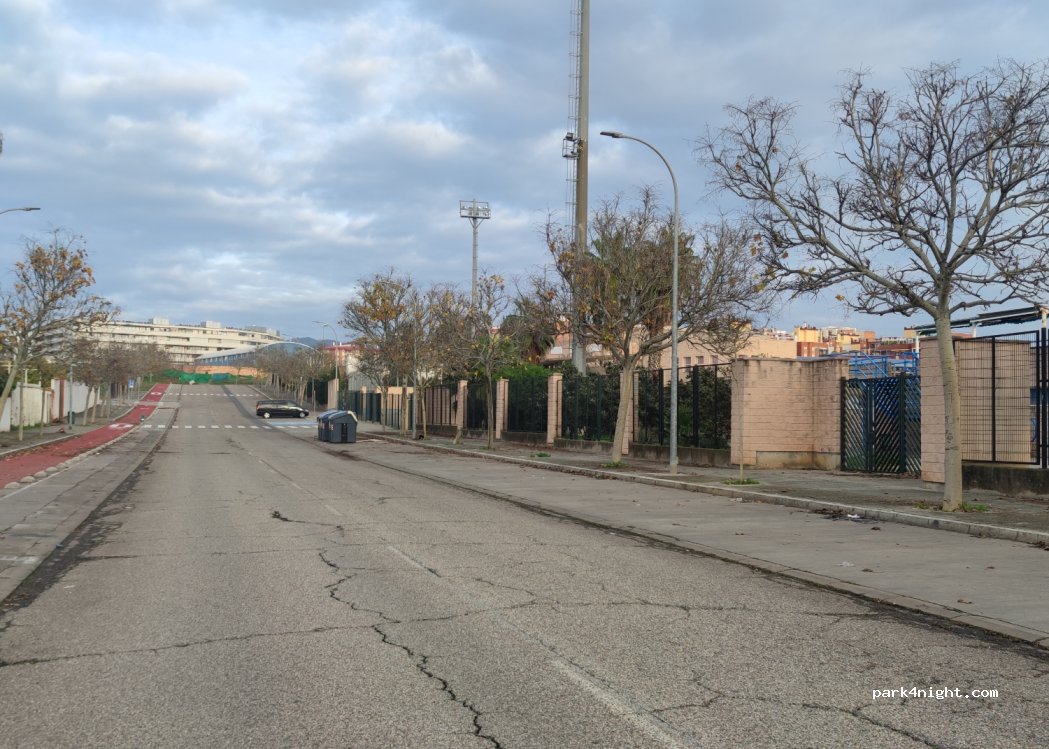 Rue longue et large avec de nombreuses places de parking gratuites près de l'hôpital de Cordoue, très calme et sûre, elle passe plusieurs fois, la police n'a aucun service