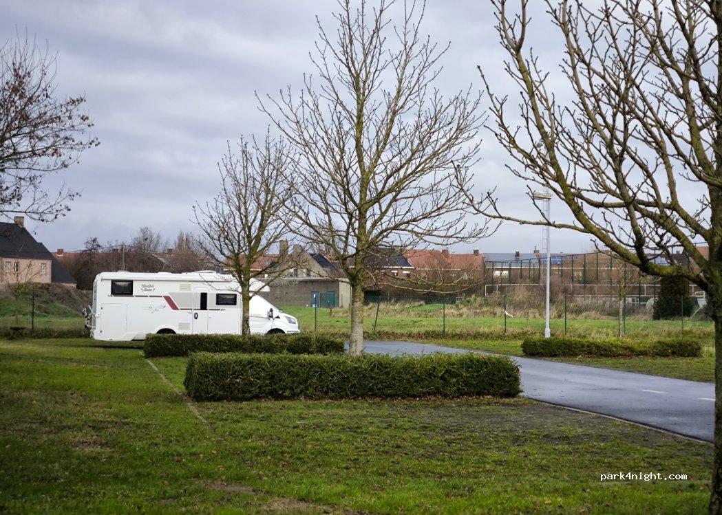 Ce n'est pas un emplacement de camping-car officiel, mais c'est une base idéale pour visiter Roulers. Vous trouverez une boulangerie et une piscine à quelques pas. Le week-end, il peut y avoir beaucoup de monde car il y a du football pour les jeunes, mais le soir, c'est calme.