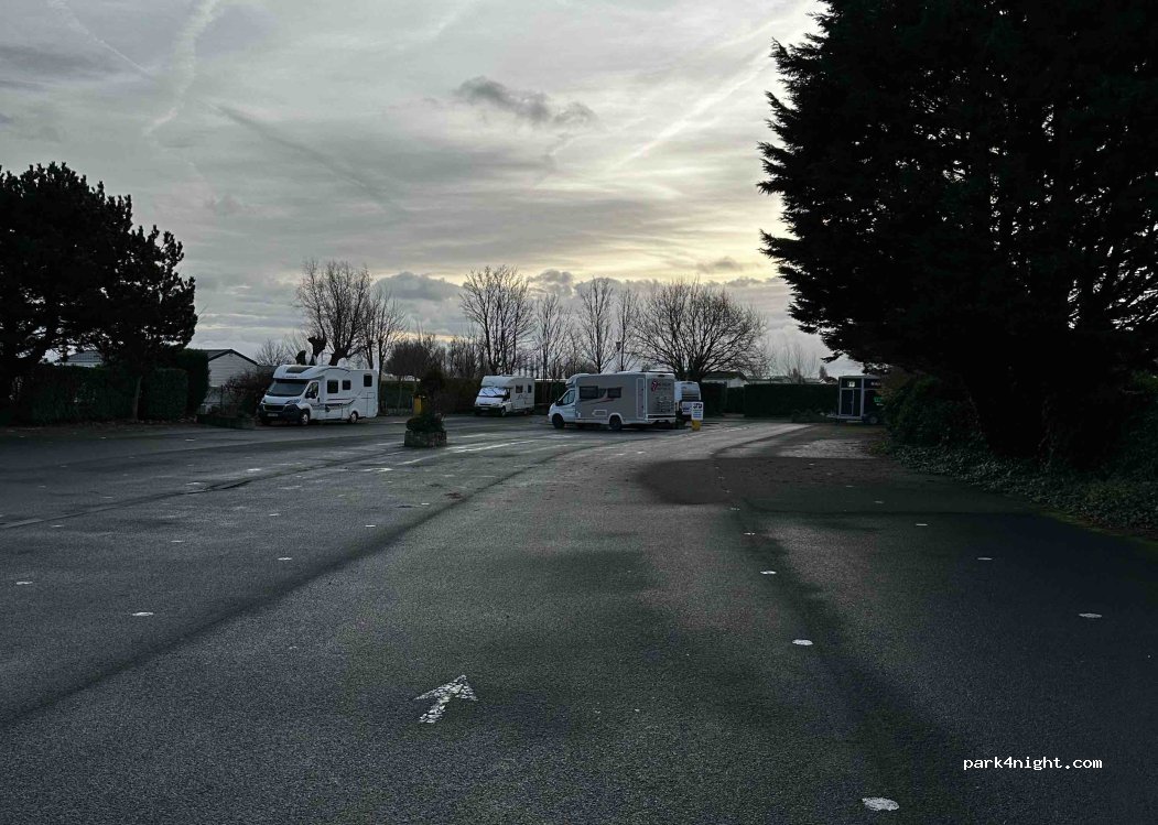 Neither good nor bad. The waste disposal and water are inside the campsite. Arriving at night and checking in in the morning is no problem. It’s basically just an asphalt lot. For €33 for 2 adults and 2 kids, it feels more like a less attractive option. Shower is 2eur, closed at night time.