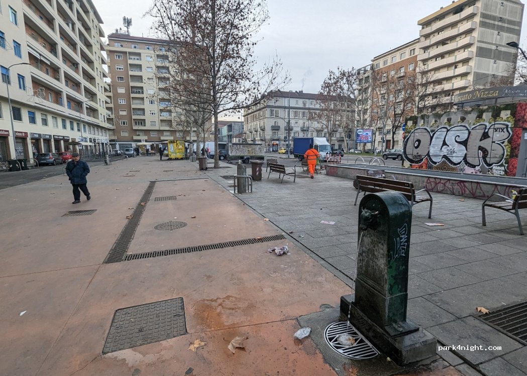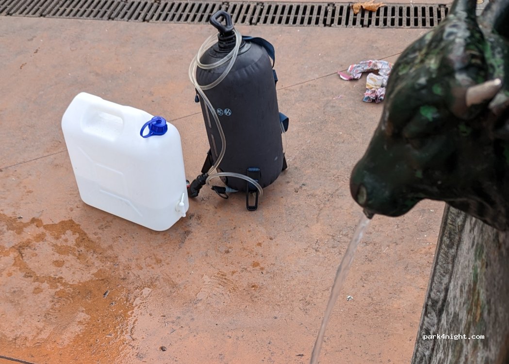 Trinkwasser fließt ununterbrochen, auch im Dezember. Einfaches Befüllen Ihrer Kanister. Auf dem Platz findet täglich ein Bauernmarkt statt.