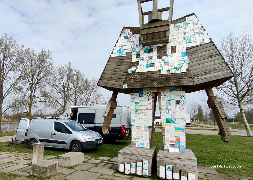 Fantastic free aire. As others have said park closer to the wooden statue then youre not bothering commuters, caught water bus which was a great experience, there is a cobbled paved road at eirher side which is really noisy on the car tires they start early but no complaints from us…