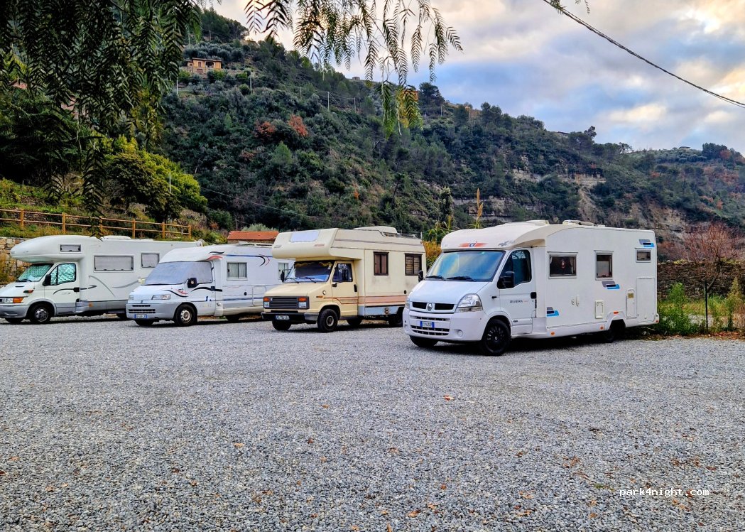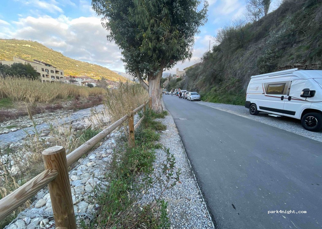 Ottimo posto con fondo ghiaia, lungo la ciclabile, tranquillo sia notte che giorno. Il centro è a 5 minuti. Molto bello fresco e rilassante. Non ci sono servizi ma c'è una fresca fontanella nell'area ginnica. Ci siamo stati due notti per visitare i paesini interni della val Argentina e Nervina. Consigliato.