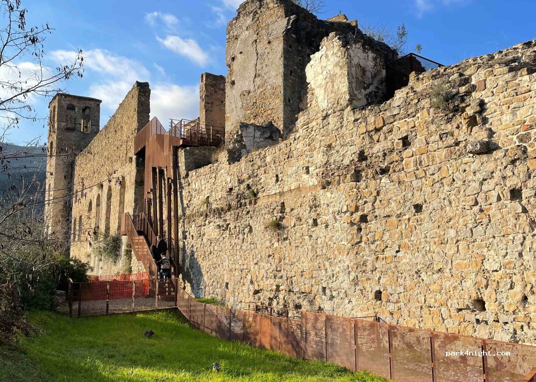 Le long de la rivière, le revêtement de la route est tout neuf. On peut se mettre sur la partie gravillonnée. Jolie vue. Calme absolu (février). Sécurisé car la police est passée faire plusieurs rondes, de jour comme de nuit. Aucune interdiction. A 5 minutes à pied du superbe village dont la vieille ville est a visiter absolument. A 100 m en descendant il y a des équipements sportifs et de jeux pour enfants tout neufs. Une petite fontaine d’eau potable (ne permet pas de remplir). Des toilettes publiques à proximité dans la ville et la parking. C’est un lieu de départ pour des promenades a vélo, jusqu’à la mer qui est à 8 km et en terrain plat qui longe la rivière. Allez faire un tour dans la papeterie qui s’appelle Luciniolo. Levez les yeux vers le plafond pour admirer les créations de fabio. Il réalise des oeuvres d’art en carton, de toute beauté, et même des machines qui fonctionnent. Il se fera un plaisir de vous donner des explications. C’est un génie ! Nous avons passé une nuit sur place, nous y reviendrons c’est merveilleux