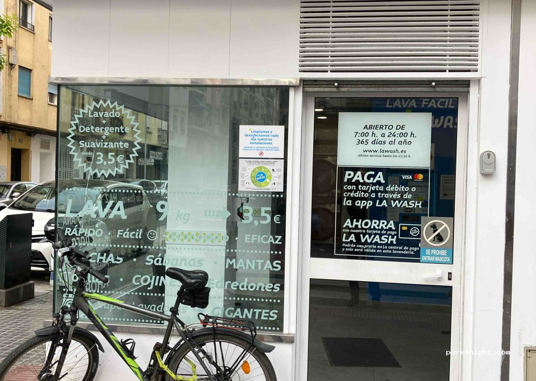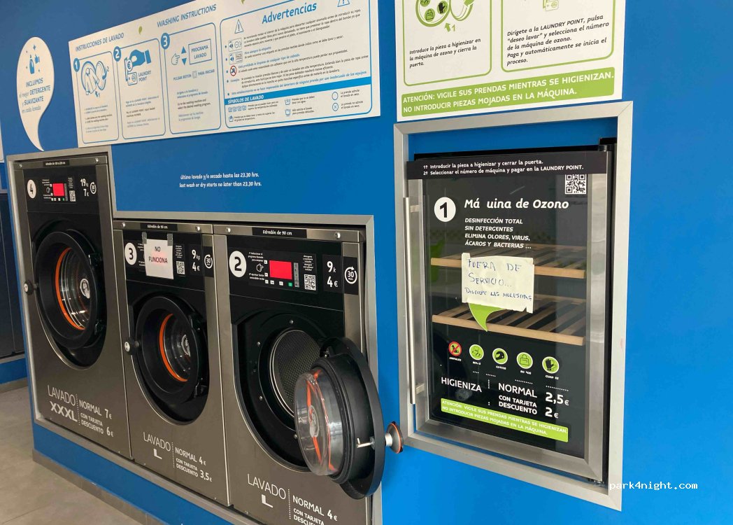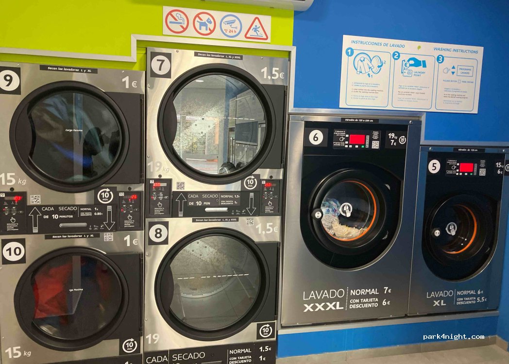 Eine Wäscherei, die 365 Tage geöffnet ist. Bezahlen mit Scheinen und Münzen. Oder mit einer App, die Sie herunterladen können. Das Waschen dauert ca. 30 Minuten. Temperatur und Programm wählbar. Auch Trocknen. Zeit und Temperatur einstellbar.