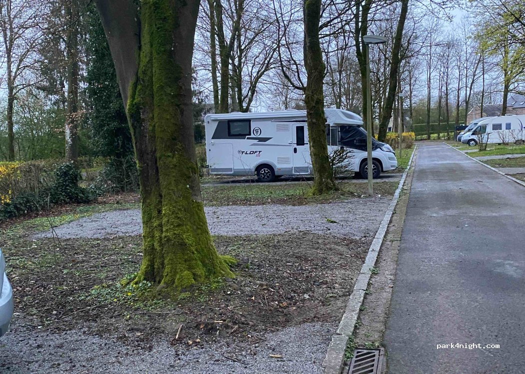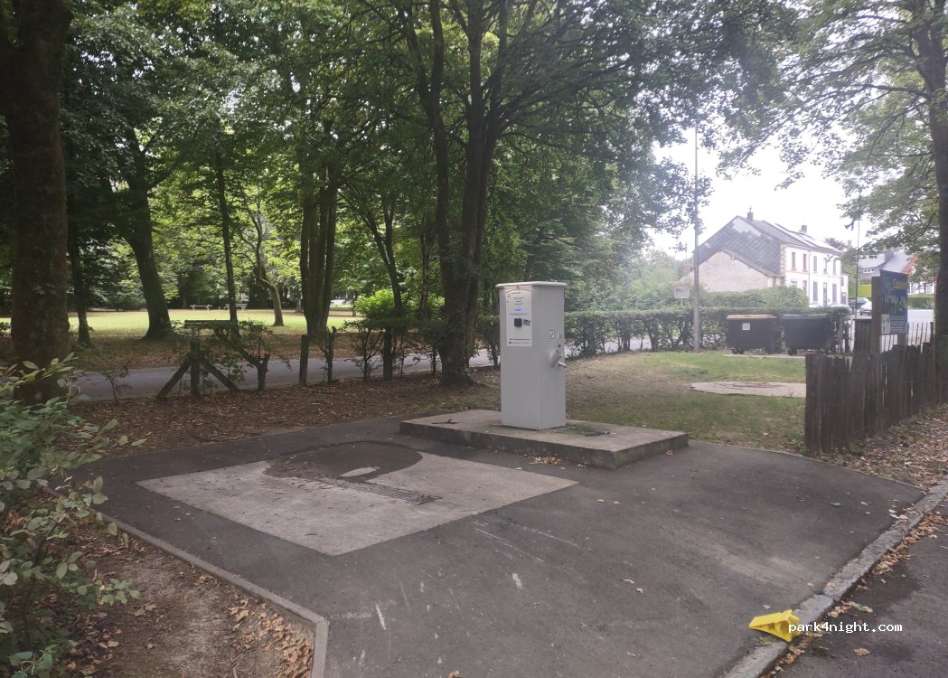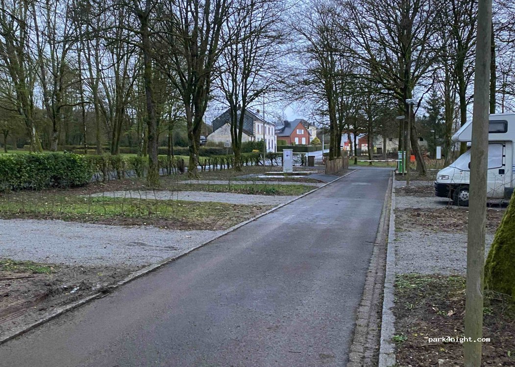 Aire ombragée. Pas possible de capter avec la parabole. Les pelouses ne sont pas entretenues. Pas possible de sortir le mobilier. Beaucoup de végétation tombe des arbres. Tout petit village perdu à 12 km de Couvin. 1 boulangerie et 1 café à distance de marche. Salle de fêtes collée à l'aire. Bien pour une nuit, sans plus.