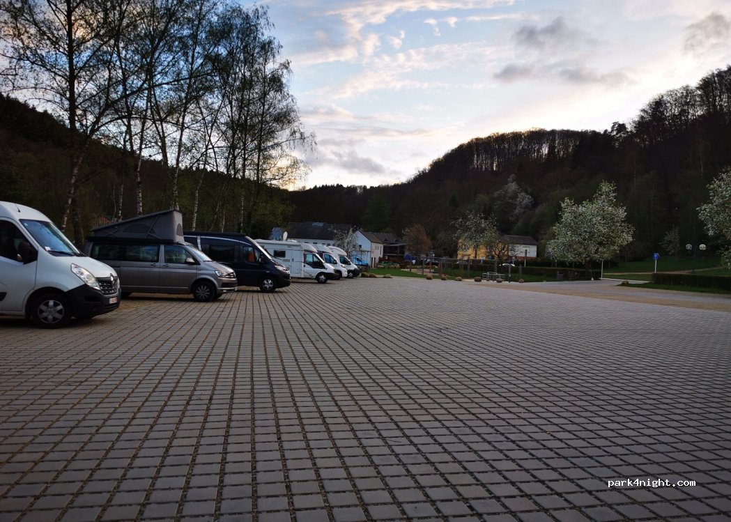 Parking gratuit à choisir pour effectuer des randonnées dans le Mullerthal. Il y a une très belle aire de jeux pour les enfants, des toilettes publiques, le bureau de l’office de tourisme et un restaurant ainsi que de nombreuses tables de pique-nique. Le parking est un peu étroit pour les gros véhicules.