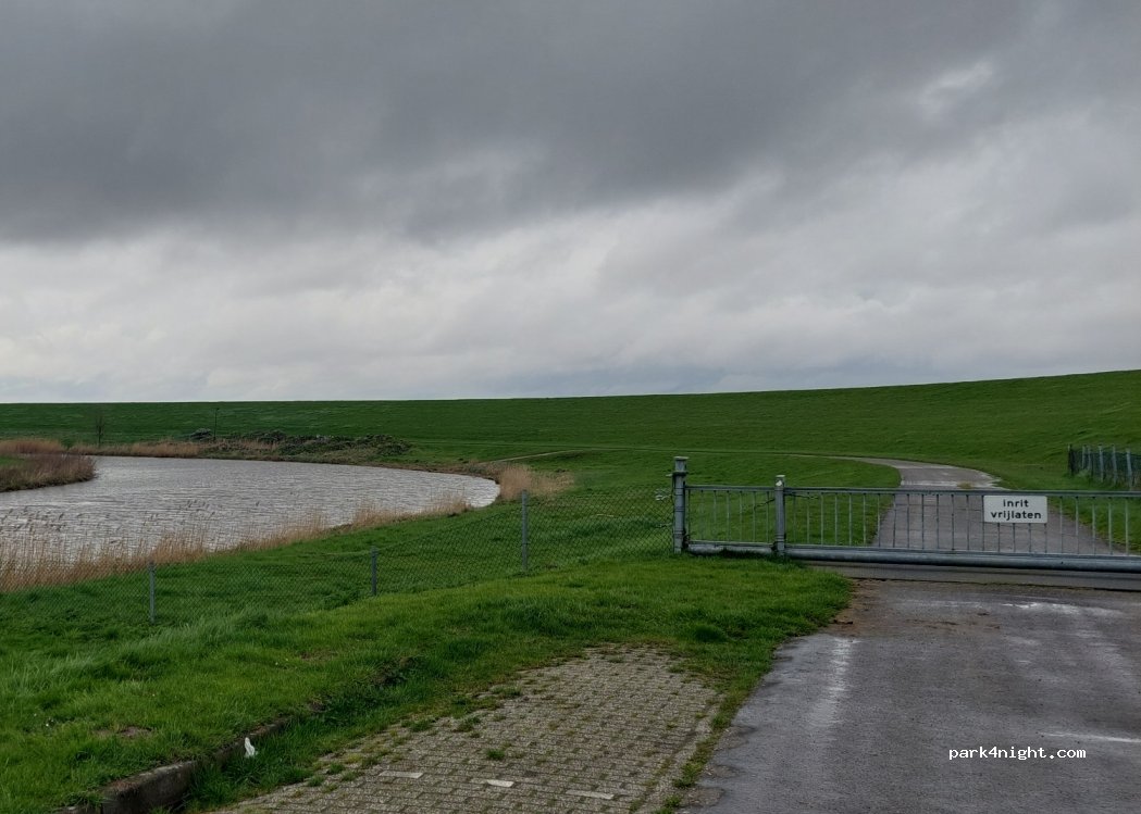 Diverse parkeerplaatsen direct achter de dijk bij de sluis.