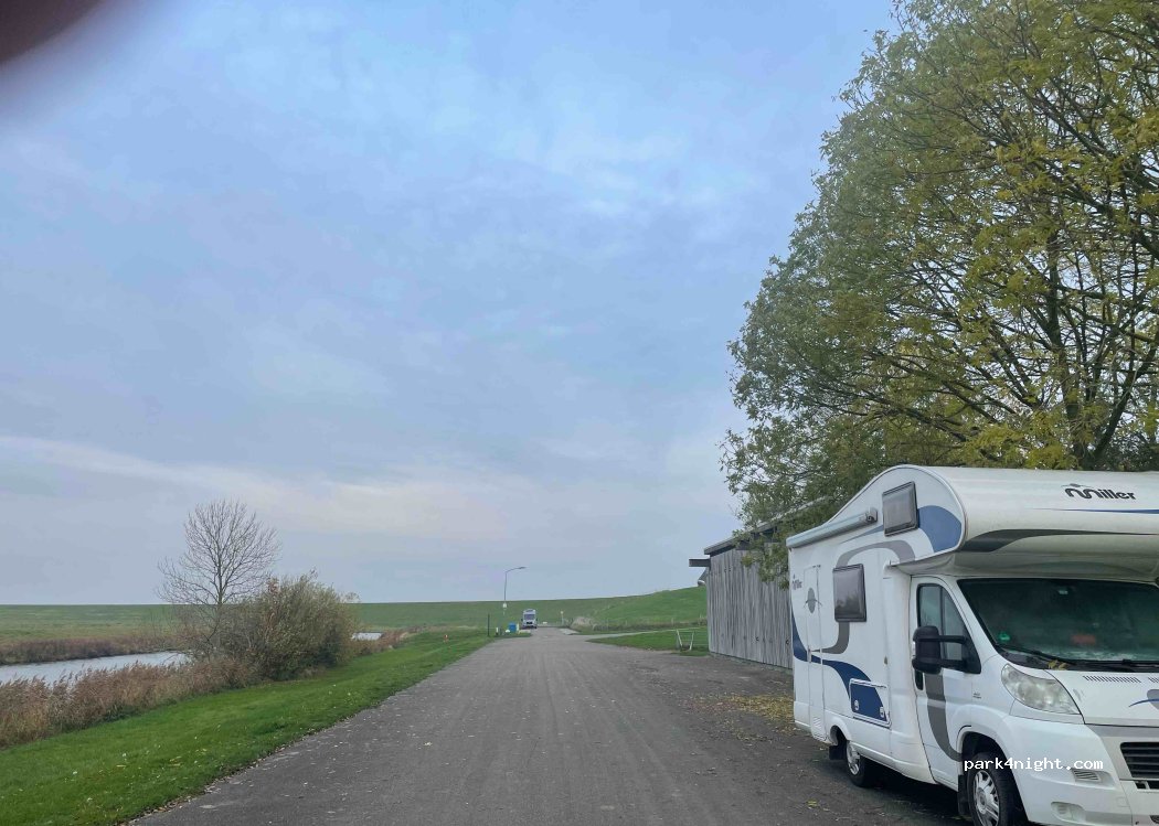 Kleiner schöner Stellplatz. Es haben sicher so ca. 7-8 kleinere Womos Platz. Direkt am Deich und am einem kleinen Fluss. Abends entsprechend viele Mücken. 2 Minuten entfernt ist eine Toilette, aber ohne Waschbecken oder sonstiges. Eine kleine Wanderung zum "Kiekkasten" lohnt sich auf jeden Fall (15min)