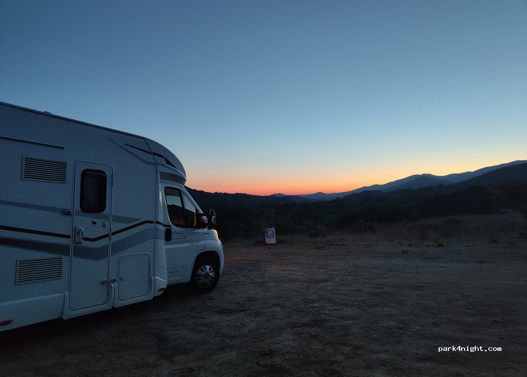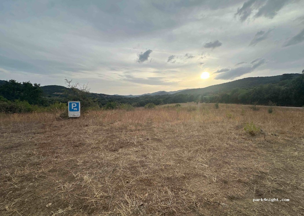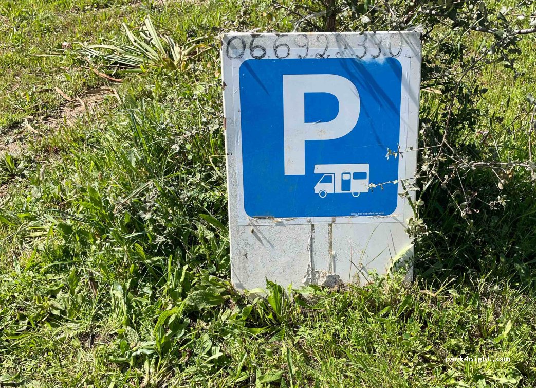 C'est en fait un parking privé gratuit plat et en herbe situé le long d'une route de campagne peu circulée; les propriétaires d'une gentillesse extrême sont producteurs d'huiles d'olives AOP excellente ainsi que du miel de fleurs et confitures fait maison. Ne manquez pas de goûter à leurs produits en échange d'une bonne nuit à la campagne. Merci à eux !