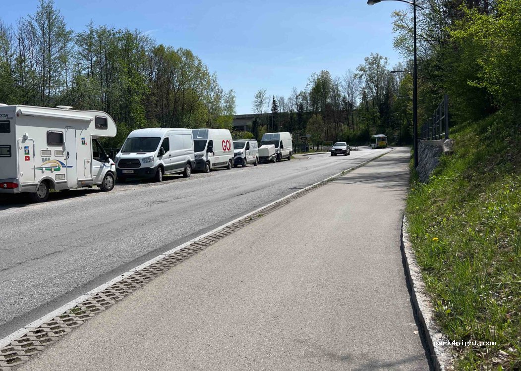 We parked here for a visit to Salzburg on the bikes. Great cycle lanes from this spot right into the centre. Also next to the bus stop. A random selection of vans were also parked in this spot so it appeared to be ok. Not sure I would stay overnight as we are not sure of the regulations.