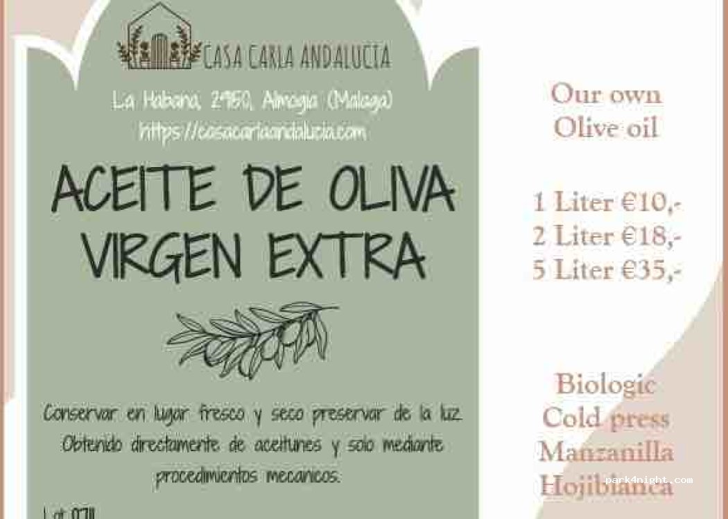Vendemos nuestro propio aceite de oliva virgen extra prensado en botellas de 1, 2 y 5 litros. Si te interesa, envíanos un mensaje o visítanos.