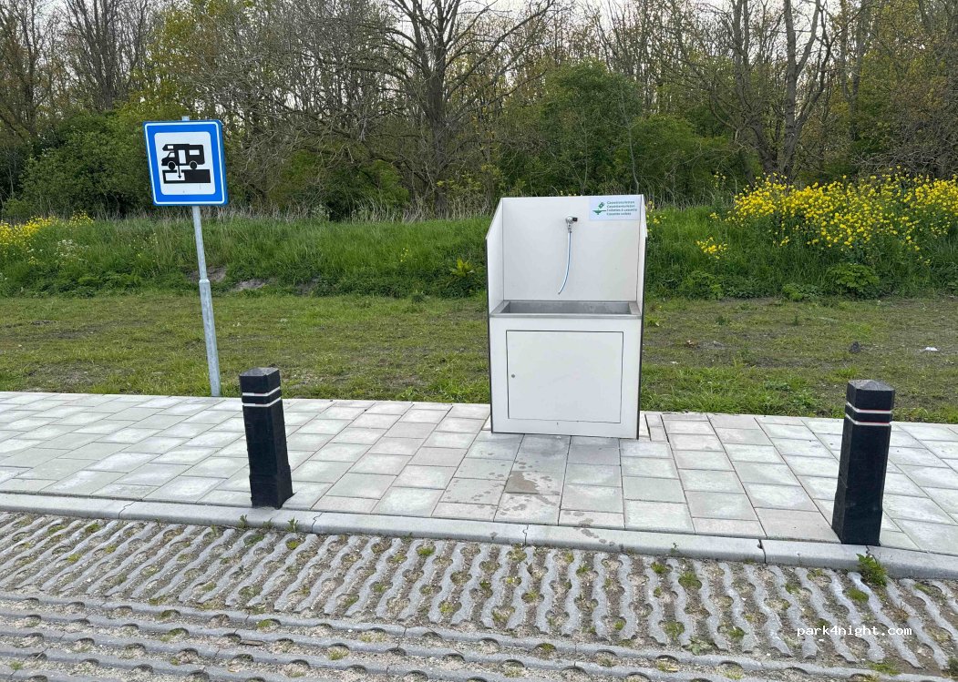Parking facing the IJsselmeer, on the edge of a road with little traffic. Noise from the nearby motorway but not really annoying. Free grey and black water drainage and water refill.