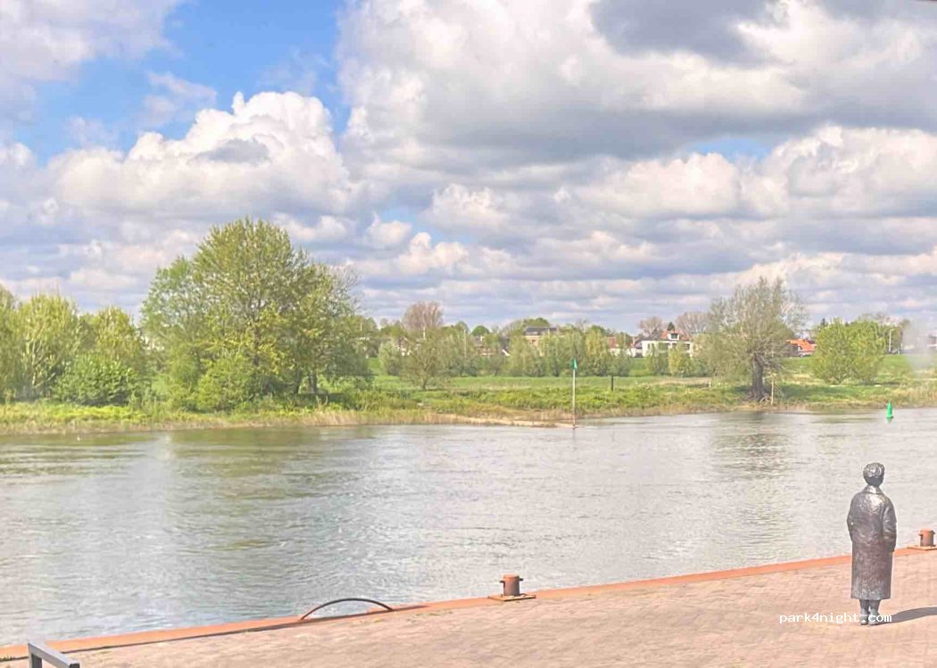 Trotz der stark befahrenen Straße ein schöner Parkplatz. Blick über die IJssel. Kostenloses Parken sonntags.