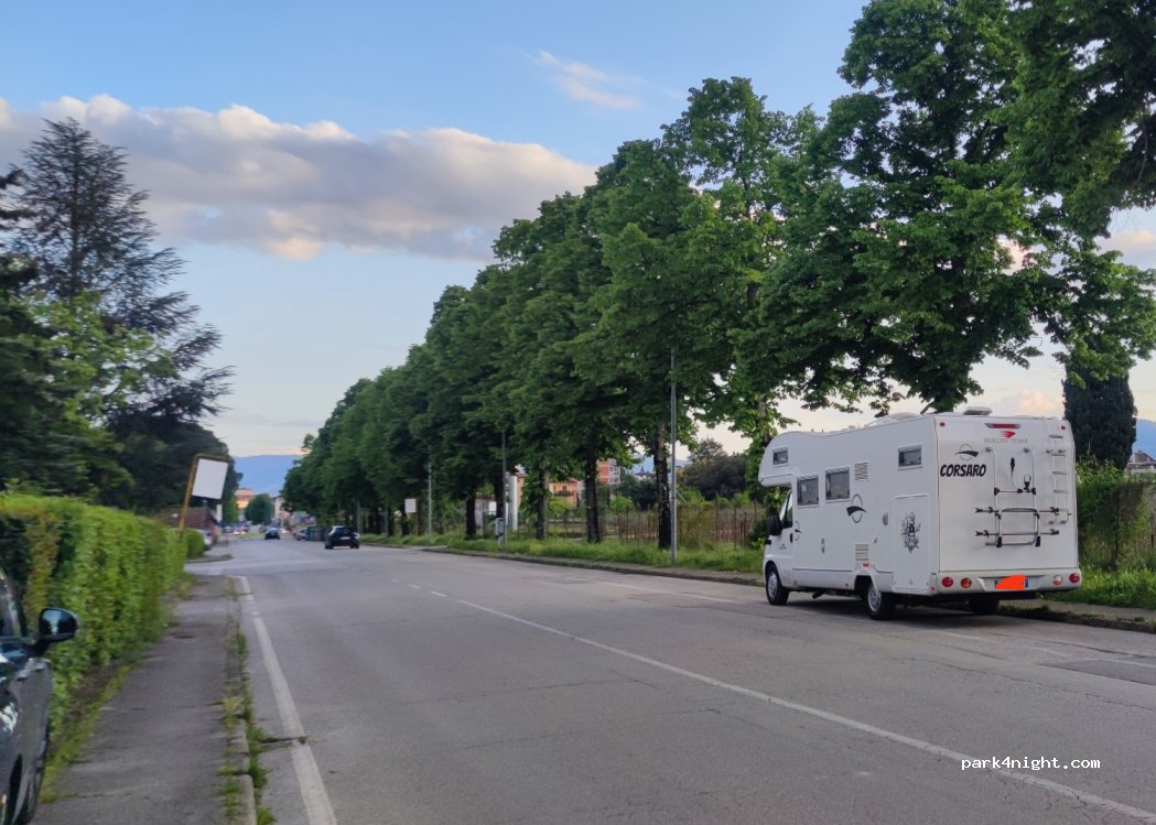 Along Viale Italia in the via dei carabinieri of Pistoia, parking along the road.