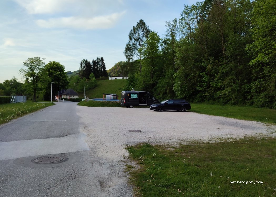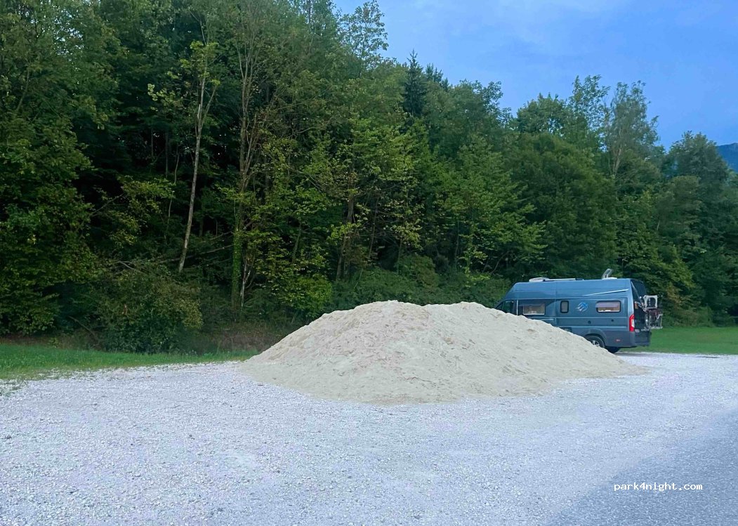 Kleiner geschotterter Parkplatz neben dem Pumptrack