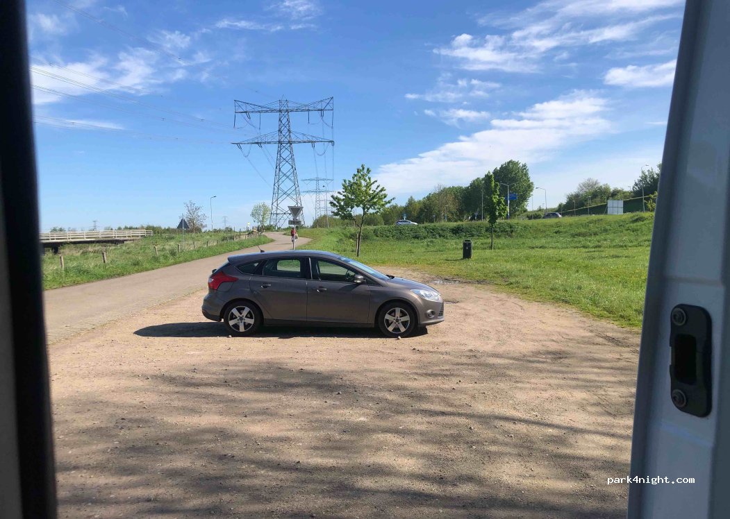 Leuke kleine onverharde parkeerplaats naast de Maas. Vanaf hier kunt u wandelingen starten. Een rustige weg achter de parkeerplaats. Geen tekenen van verbod. Mogelijk zwemmen in het meer.