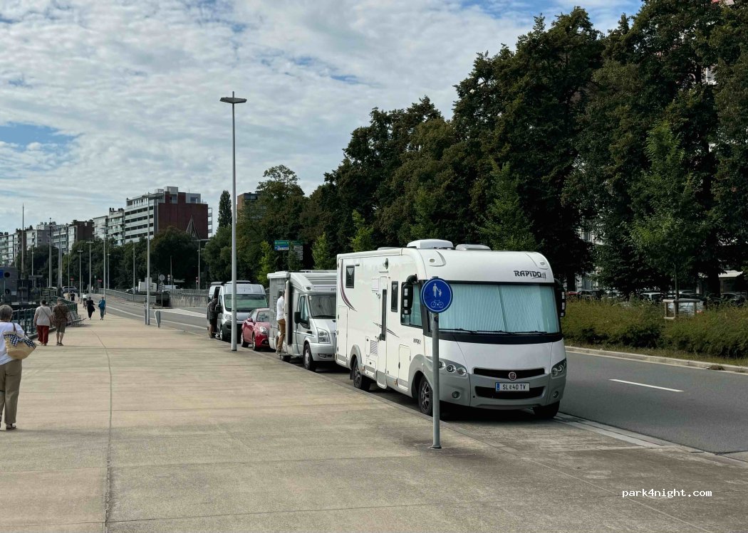 Прекрасне паркувальне місце, близько до центру, безпечна частина міста, одразу красиві види. Ідеально, для кількагодинної прогулянки по центру міста. Оплата через додаток App дуже зручна. місця великі паралельно дорозі і річці , 7,5 метровий кемпер легко знайшов паркомісце