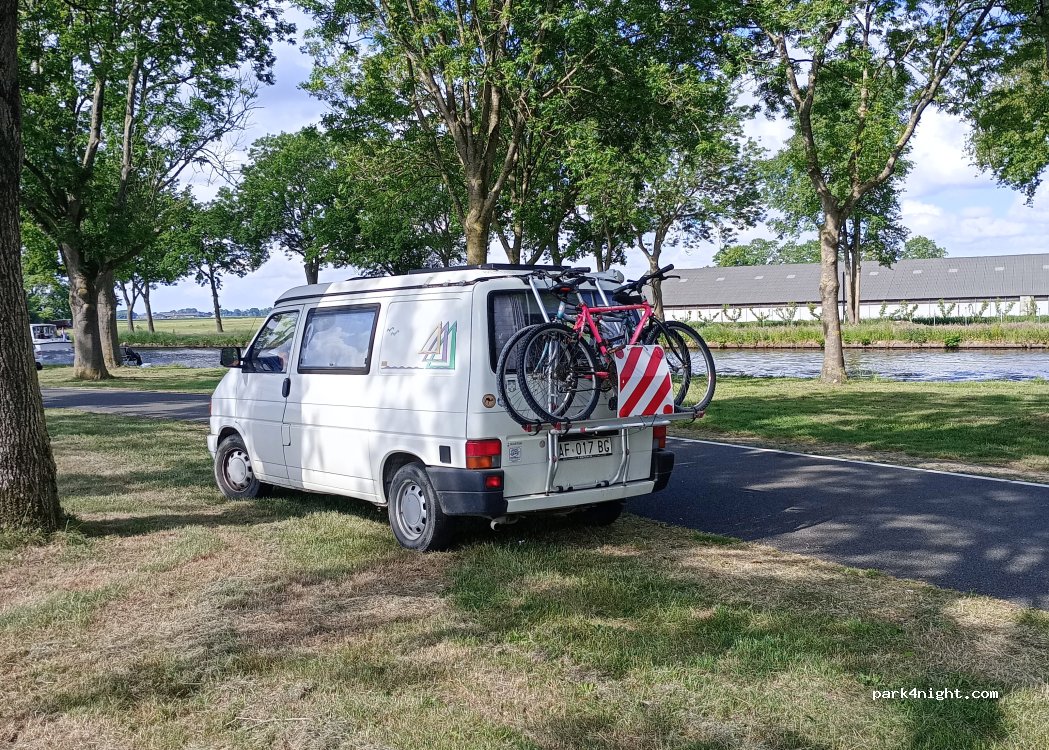 Gratis parkeerplaats zonder service. Relatief vlak, met picknicktafel langs de gracht.