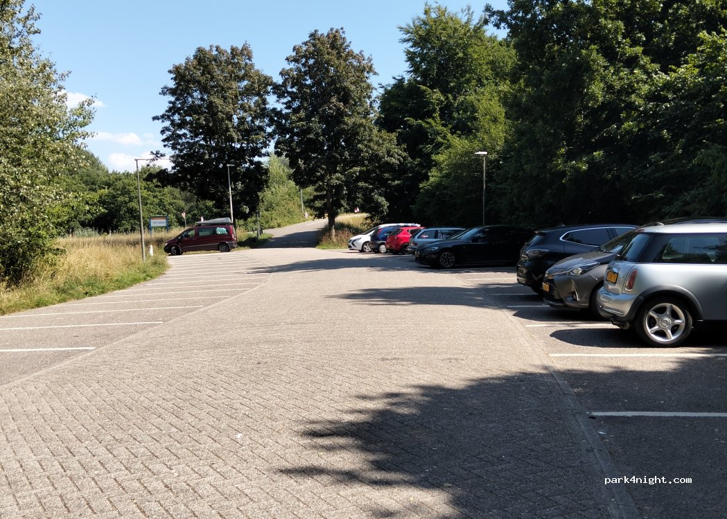 Parkeerplaats met circa 25 plaatsen, geen hoogtebarrières, maximale parkeertijd 24 uur. Dichtbij een park met een meer voor wandelingen.