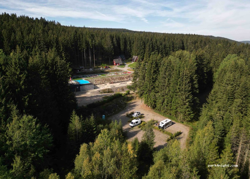 Stellplatz in einer tollen Ferienanlage mit im Erzgebirgischen Wald. Neben Ferienhäusern und dem Stellplatz gibt es einen großzügigen Spielplatz, eine Minigolfanlage, einen Pool sowie (im Winter) Sauna. Für Strom werden 2€ Münzen benötigt. 2€ = 6h Strom (pauschal).