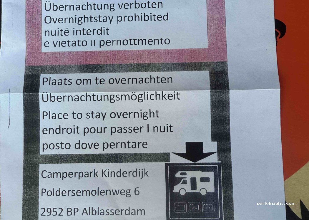 Parking gratuit. Particulièrement intéressant car il se trouve à côté du centre d'information où vous pouvez louer des vélos à partir de 12 €/jour. Kinderdjik est également très accessible et offre de belles balades à vélo.