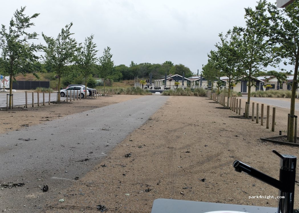 Grand parking près de la plage. Aucune restriction de hauteur. Parking payant d'avril à octobre.
