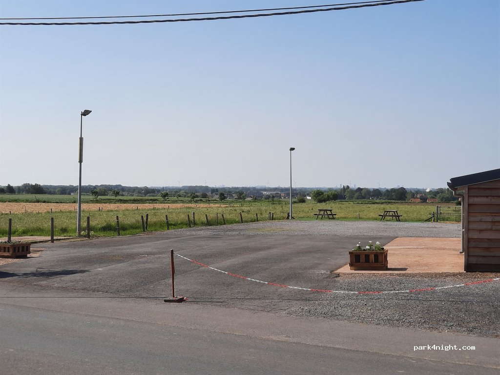 plaatsen zoals beschreven! we waren daar alleen dus een zee aan ruimte, er zijn een paar pick nick bankjes wat wel gezellig is. Elec aansluiting is geen probleem. Rustige plaats en nacht. Bakker letterlijk aan de hoek.Tuinhuisje waar er wandel en fietsroutes aangeduid staan samen met pamfletten. zeer vriendelijk onthaal. heel leuke plaats om eens de streek te verkennen en nachtje door te steken
