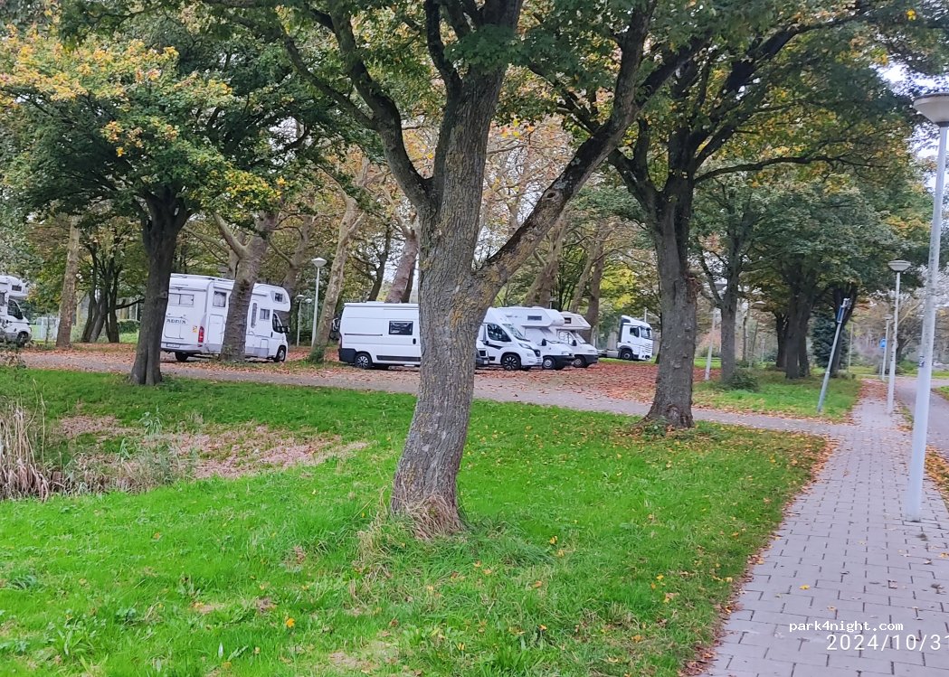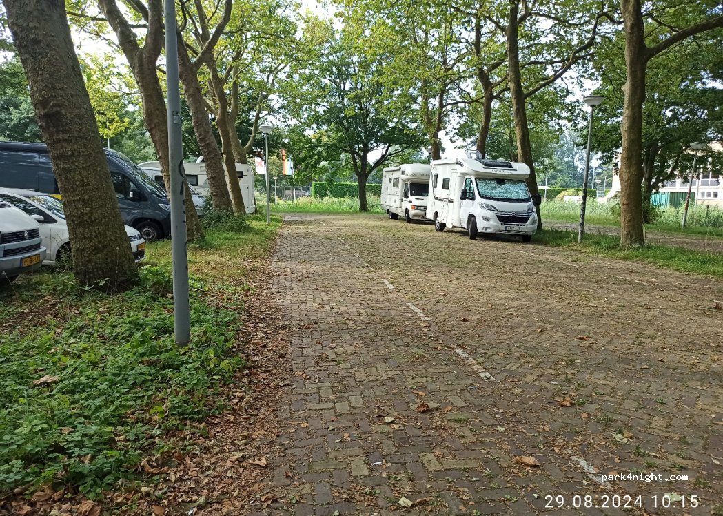 Parking en face d’un terrain et d’un gymnase donc bruyant jusqu’à tard le soir et on entend les avions de temps en temps. Accueille sans problème les campings cars mais les places ne sont pas du tout de niveau. À 30min du centre d’Amsterdam en vélo avec des pistes cyclables très pratique. Nous y sommes resté 3 nuits sans problème.